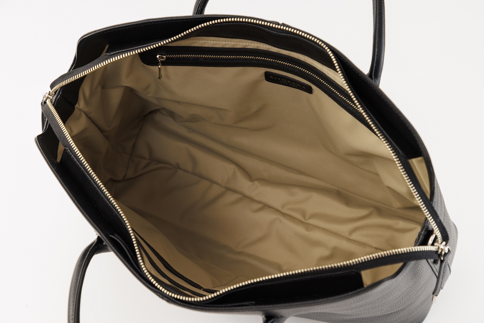 大容量ながら奥まで見やすいように採用したライトベージュの裏地にはテフロン加工が施されていて、汚れを防いでくれます。