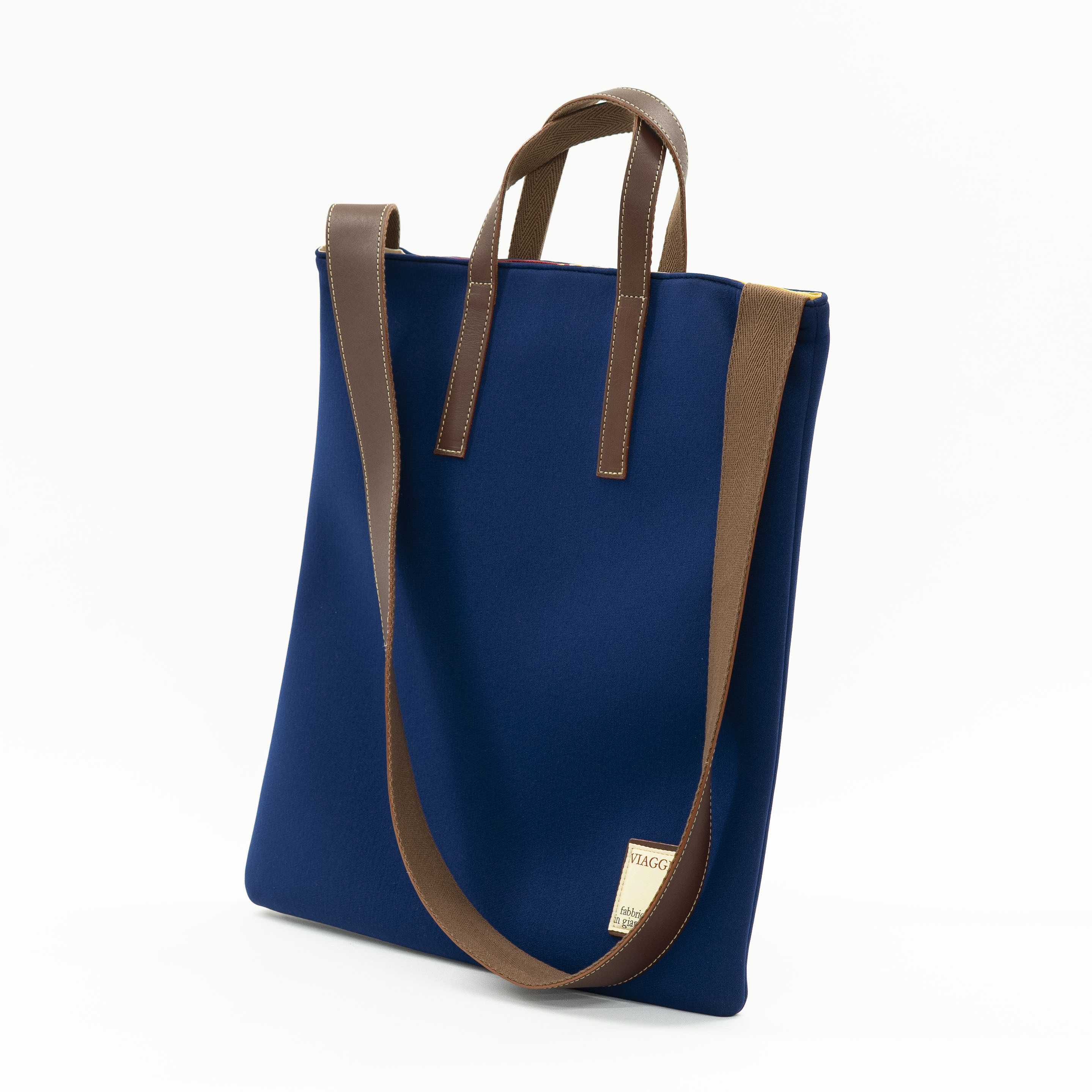 北海道旭川でバッグ小売店としてはじまった歴史を活かし、小売り、卸、OEMの3つの事業を展開しています。社内には50坪の倉庫を有し、少ロットから大量生産までお客様の要望に合わせて対応します。自社ブランド「Viaggi」は日常のテーマに合わせた製品を取り揃え、全国の百貨店や専門店で販売。丈夫で軽いナイロン生地や、しなやかな植物性タンニン革を使用し、先染めされたストライプ生地のデザインが特徴です。