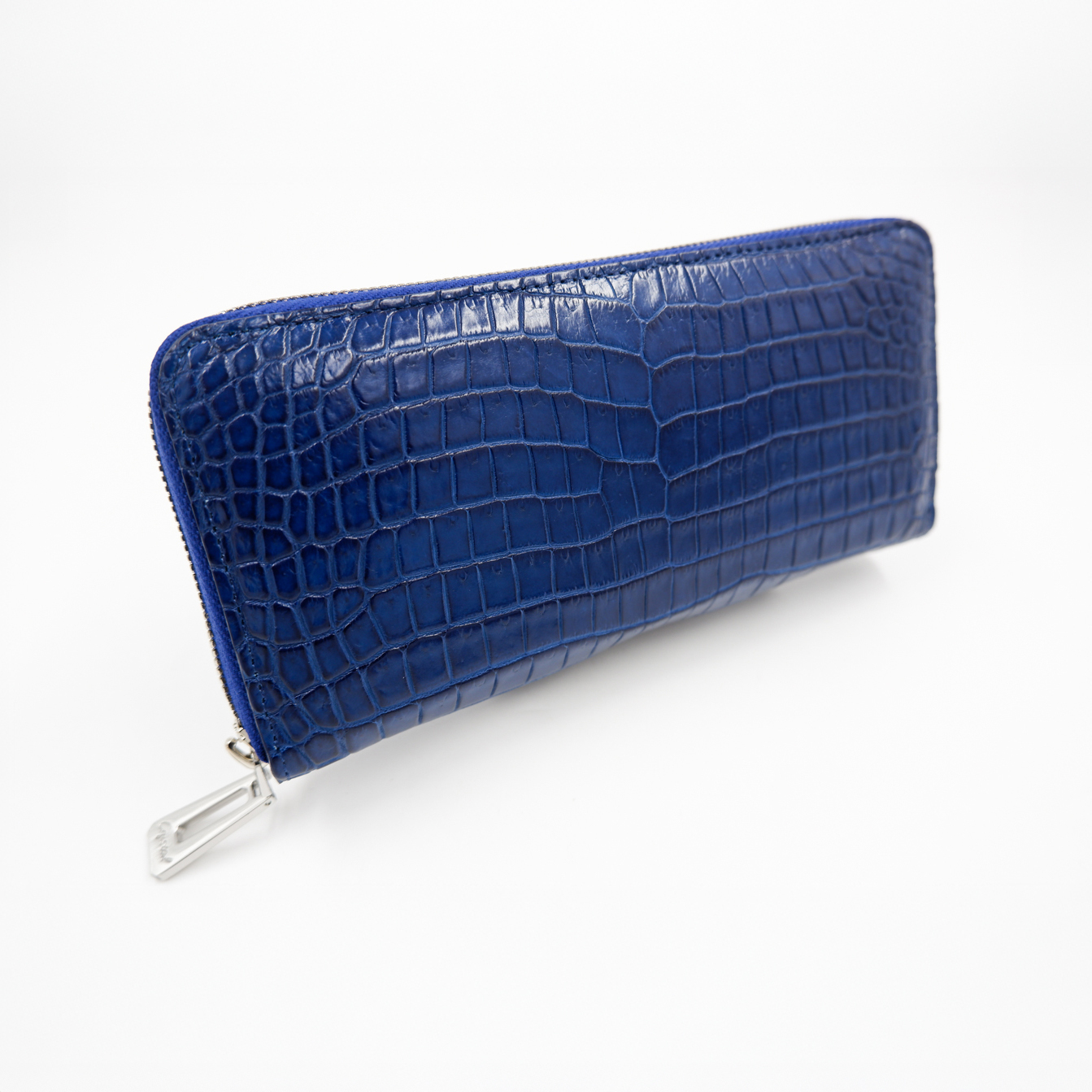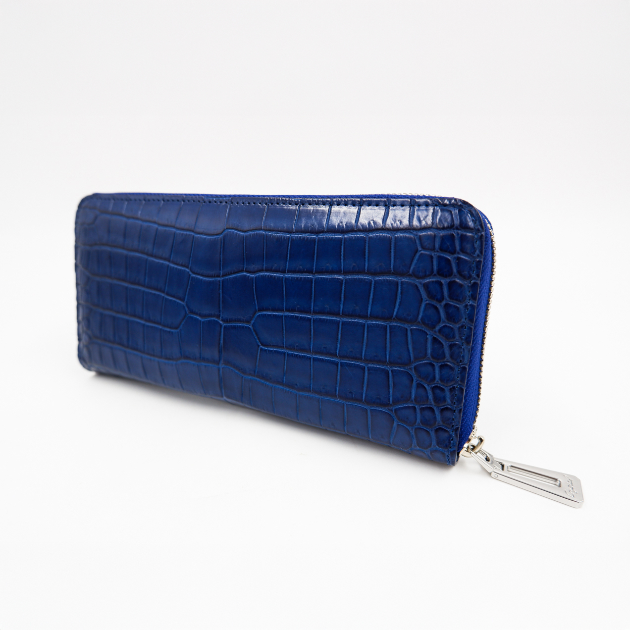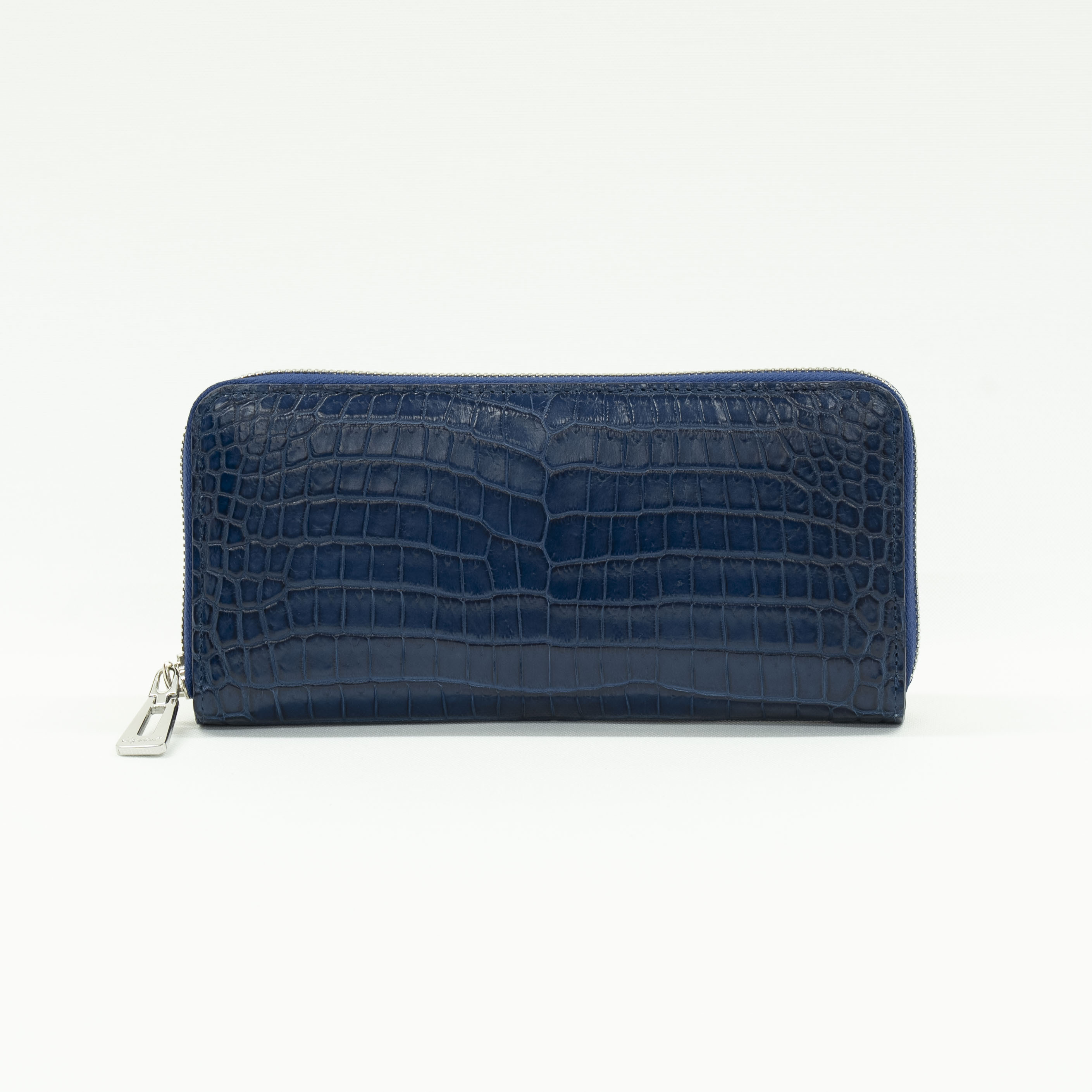 何気ない毎日を上質へ導く藍染クロコダイルのラウンドウォレット。