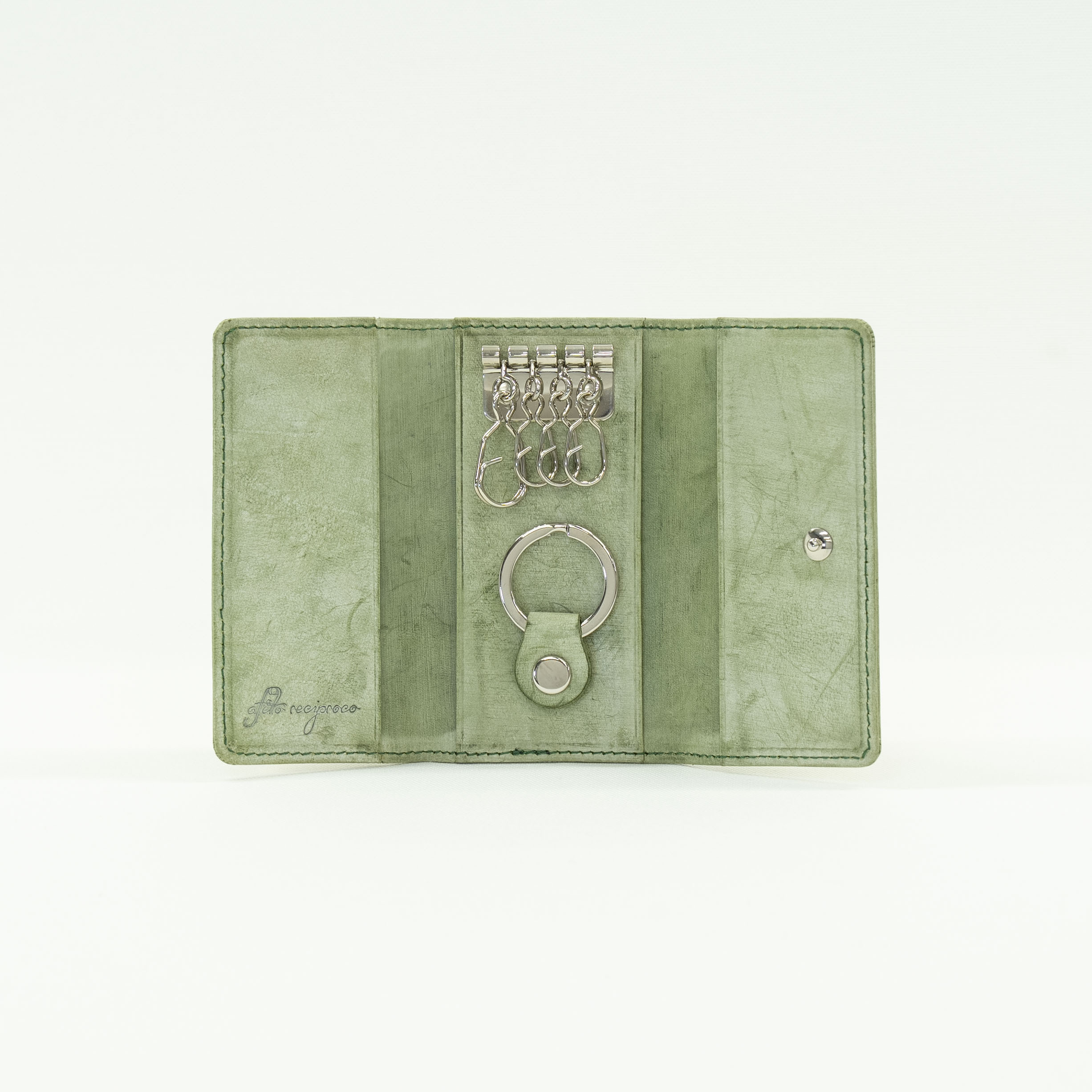 通常のキーケースではスマートキーが入らない為、リングを付けてキーをぶら下げるようにしています。