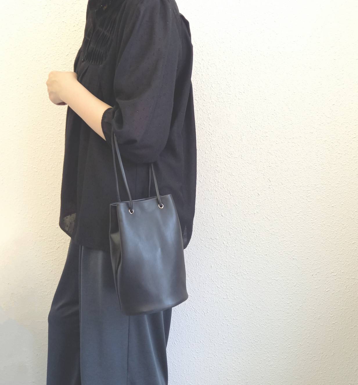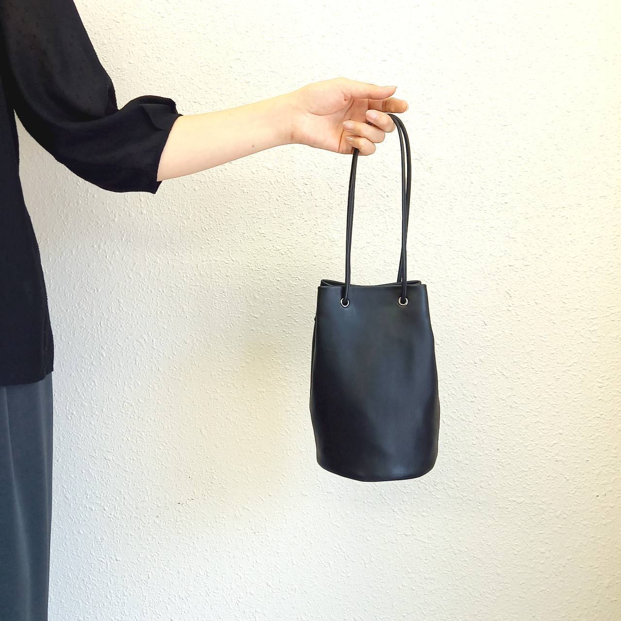 長財布も入るミニドローストリングバッグになります。