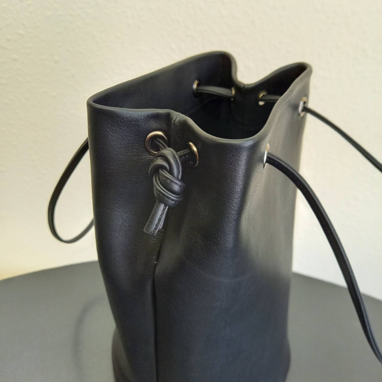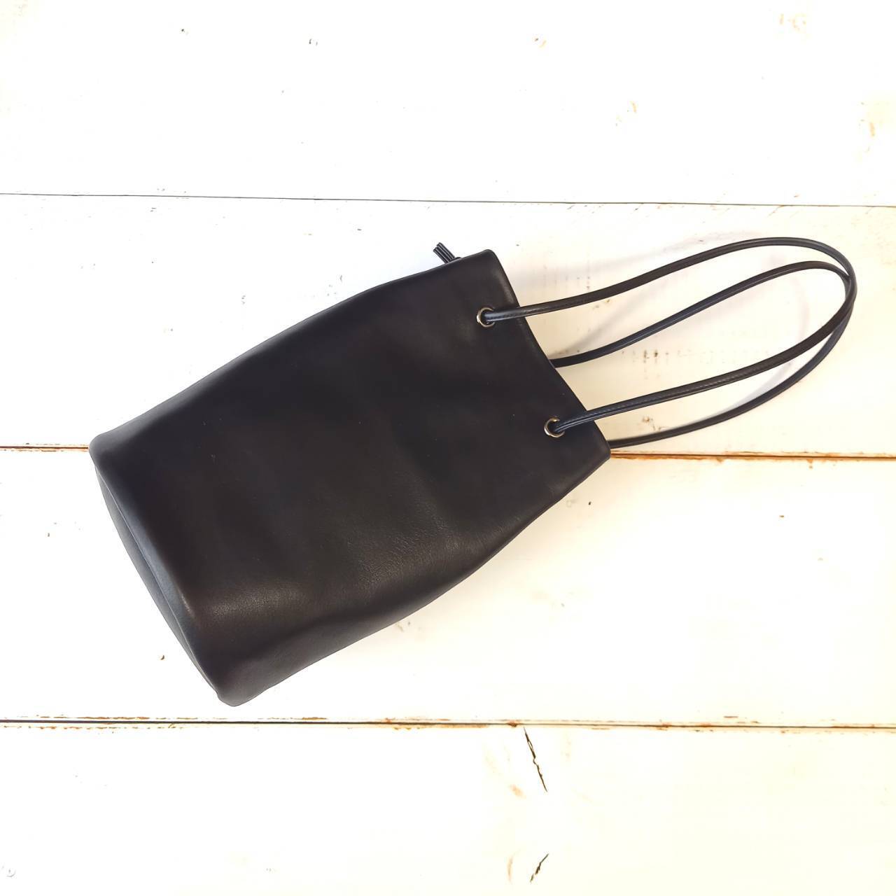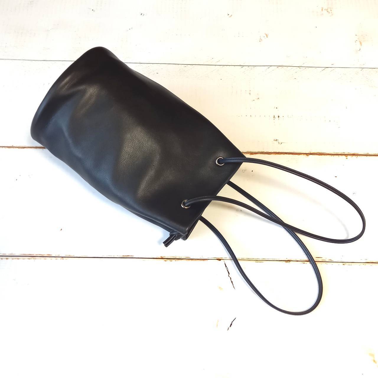 美しいスムースの、高級イタリアレザーを使用したミニ巾着バッグです。