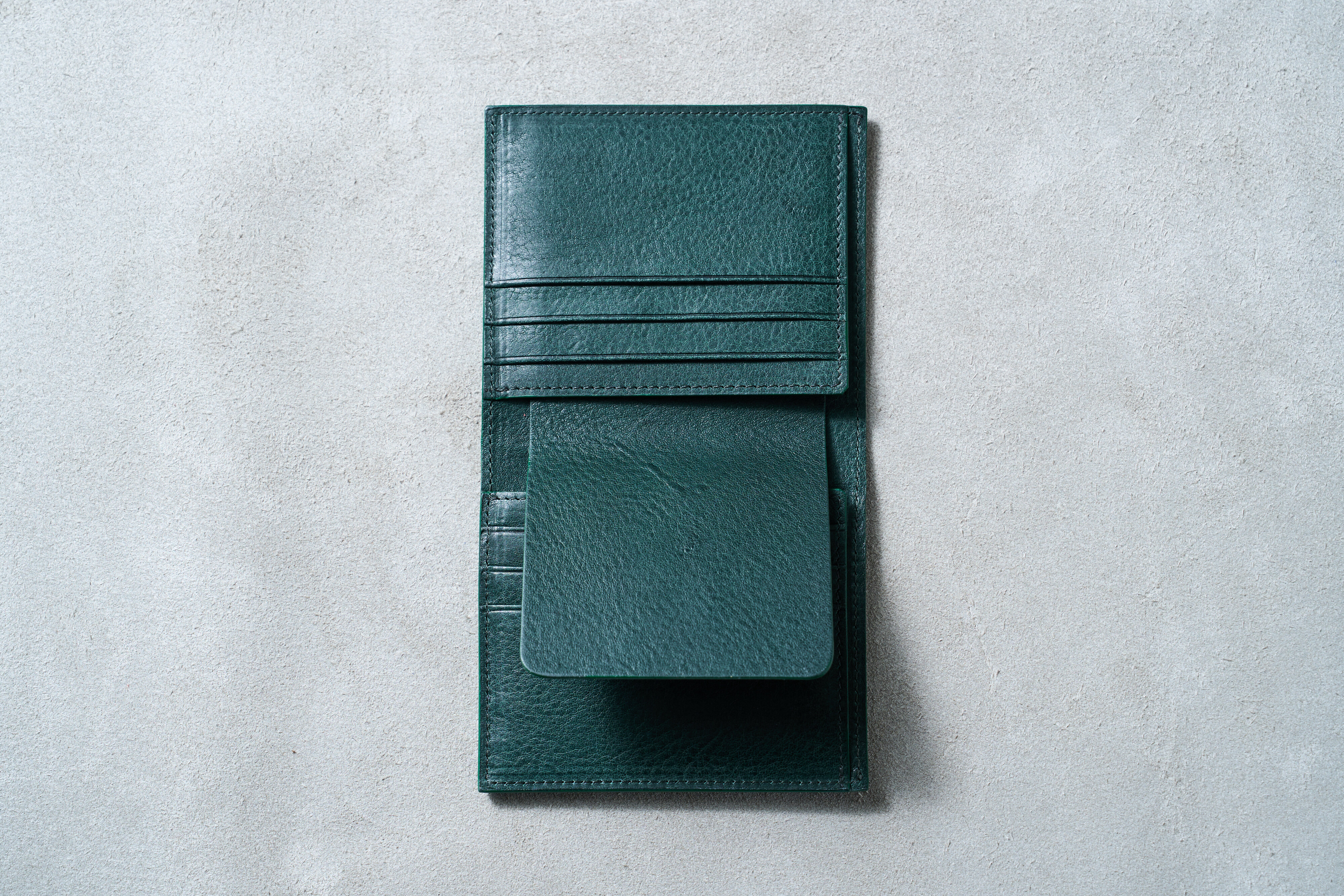 内側に動く仕切りがあり、お札、領収書、メモ紙などを仕分けるのに便利。