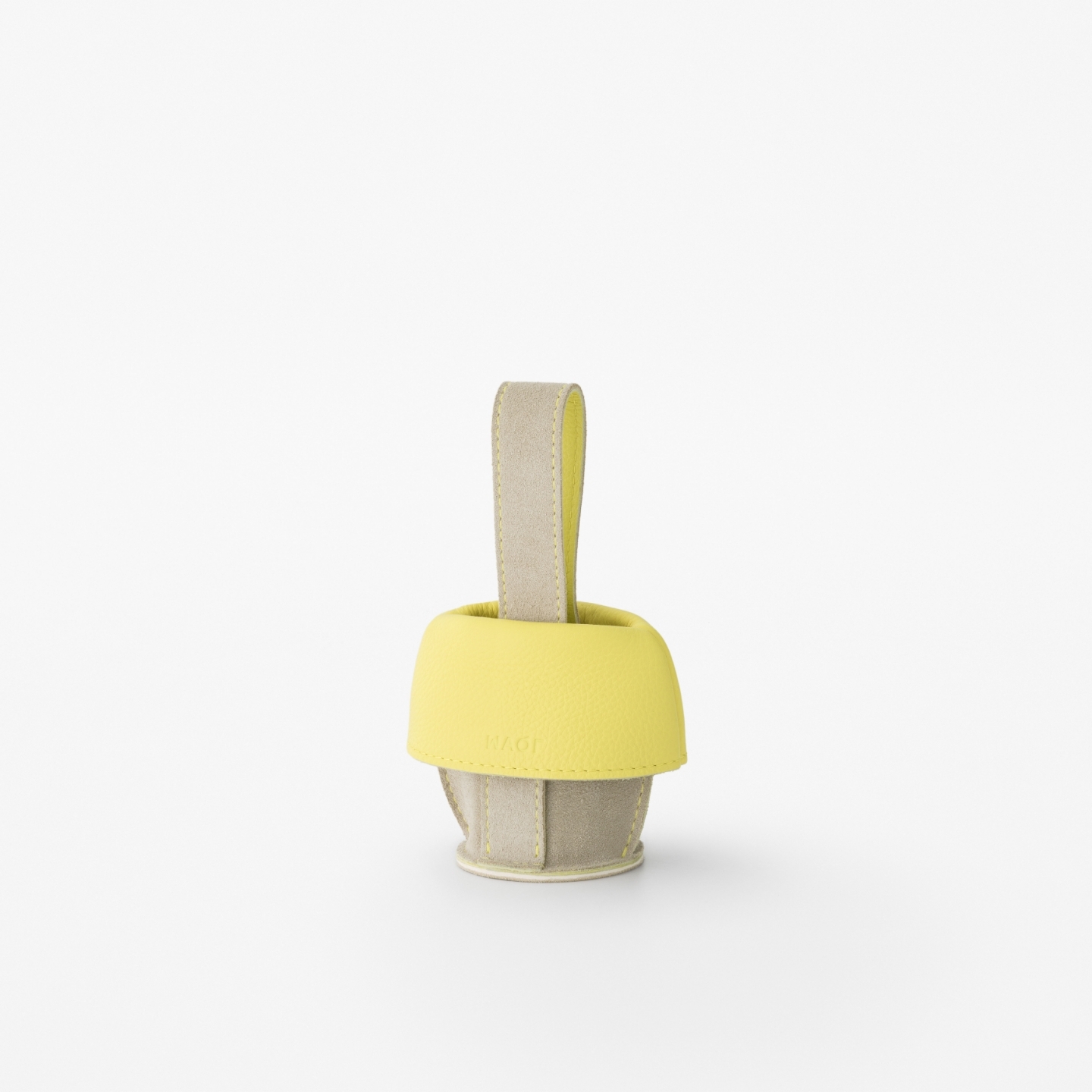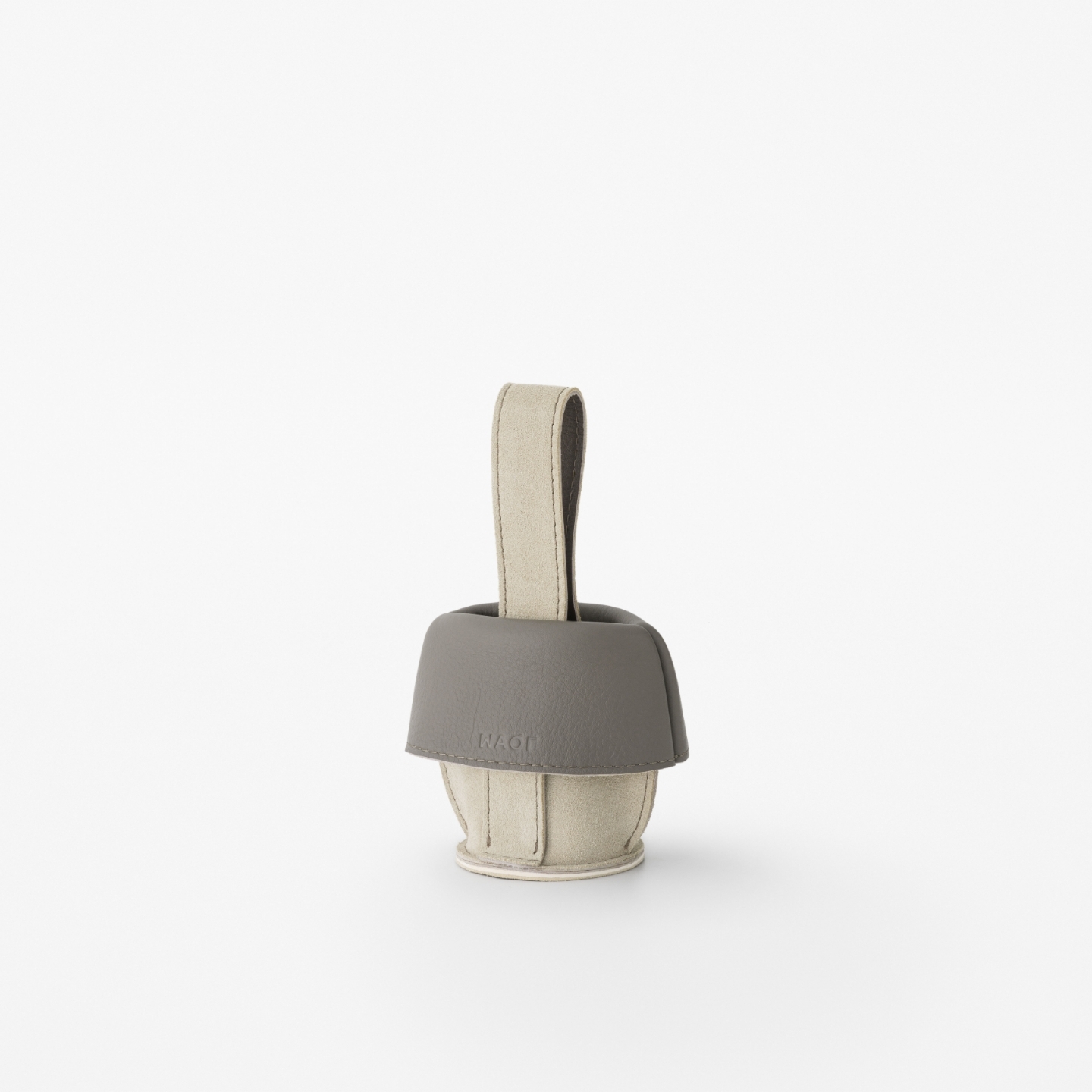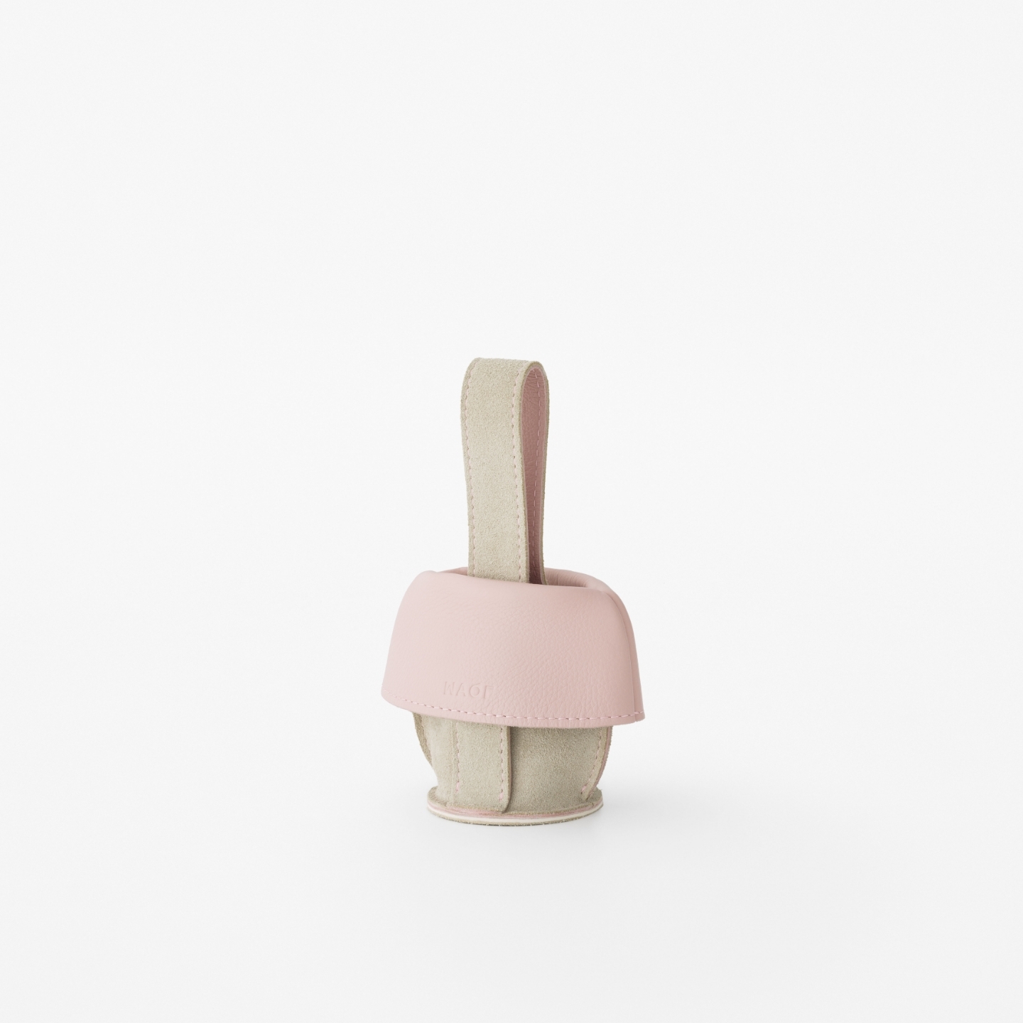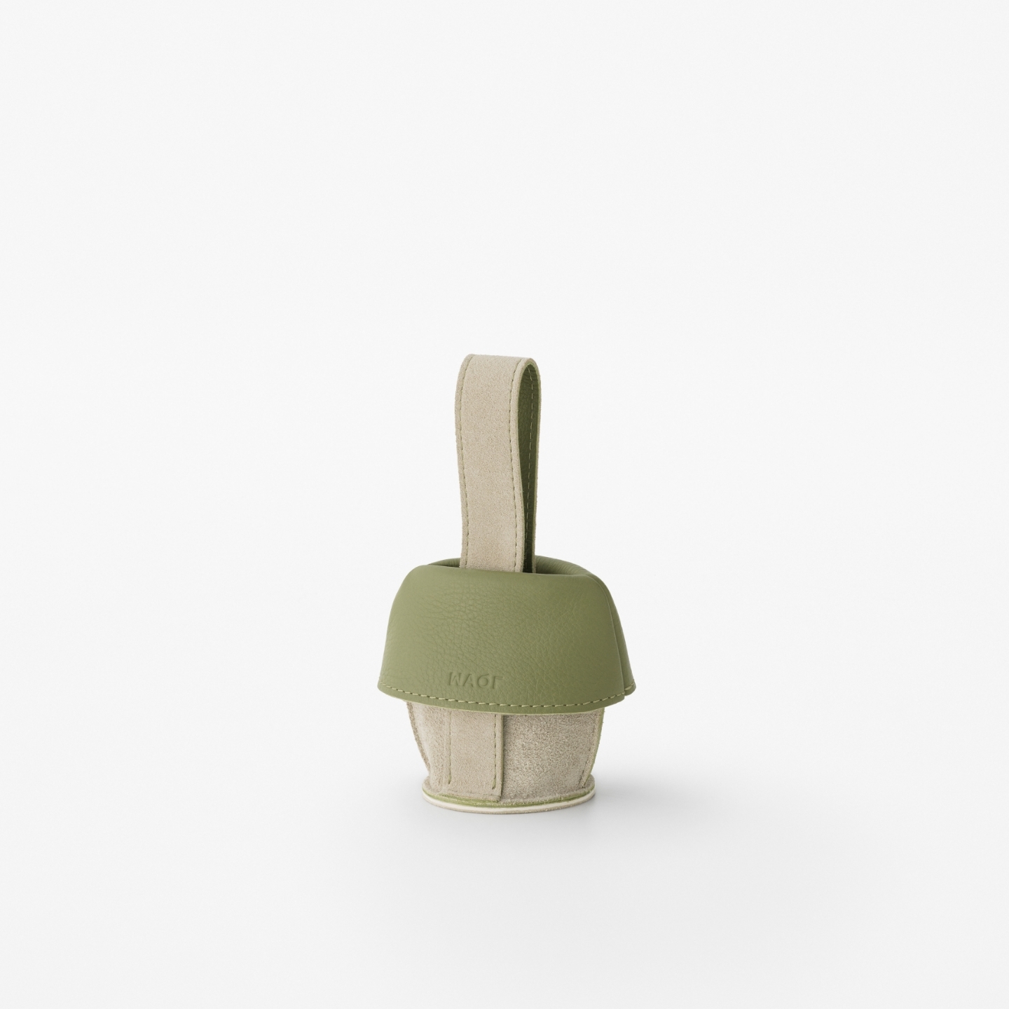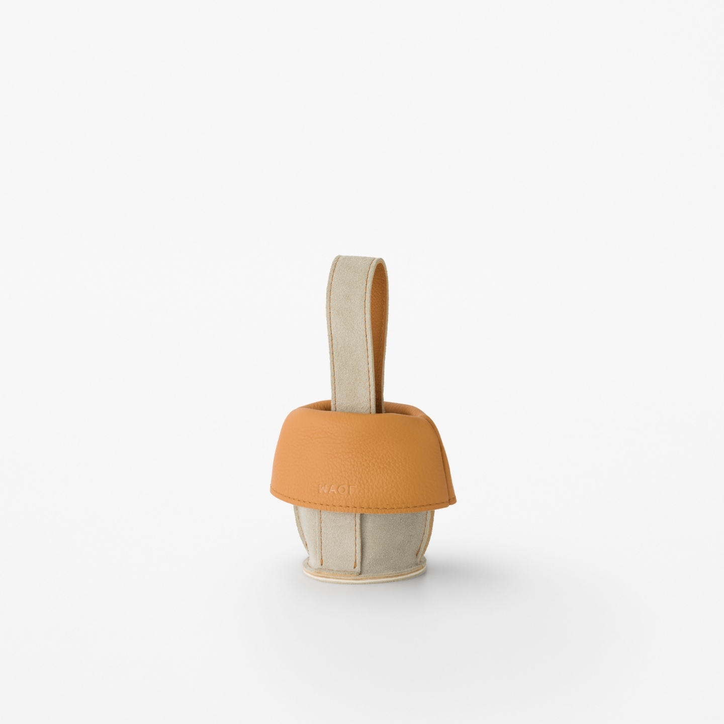 本作のチャームには、革の表側である銀面( シボ)と、裏側の床面( スエード)を貼り合わせた素材を使用しています。